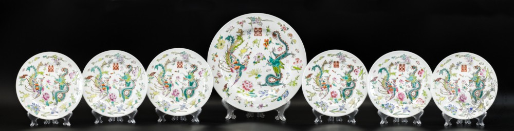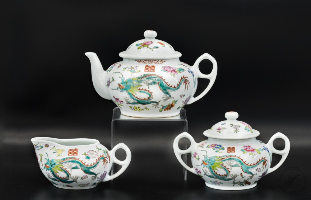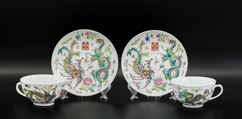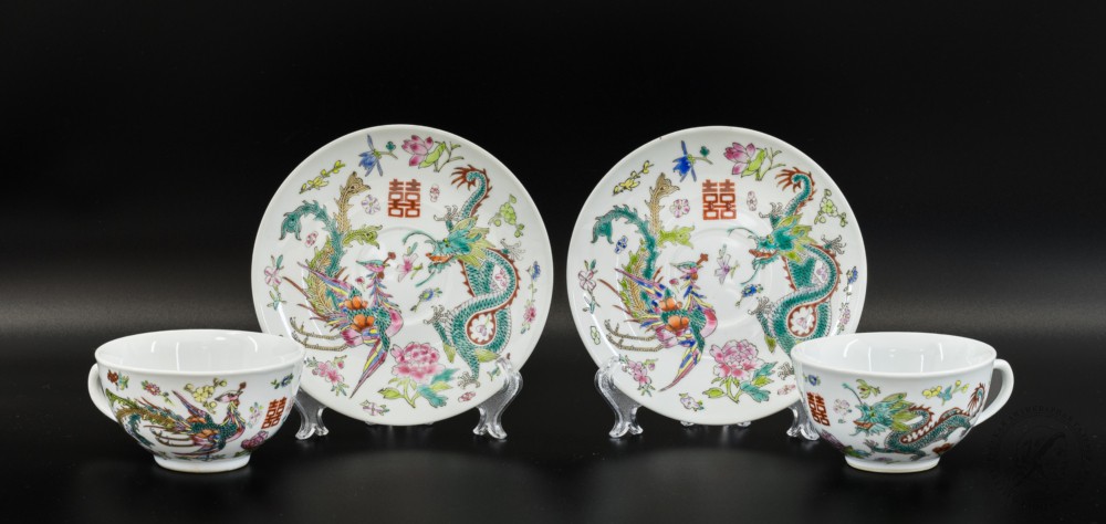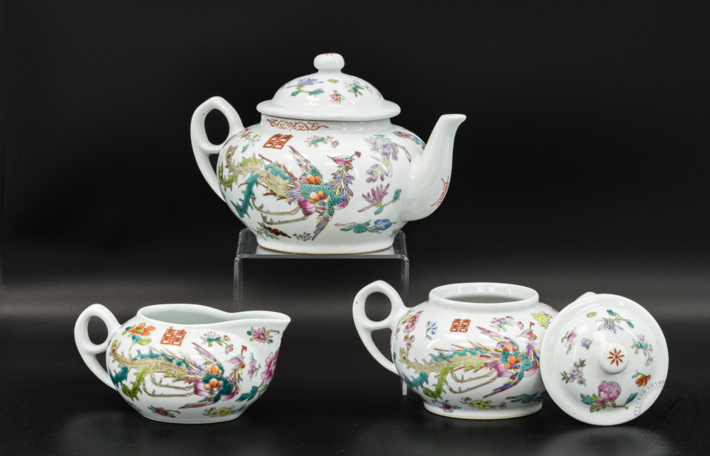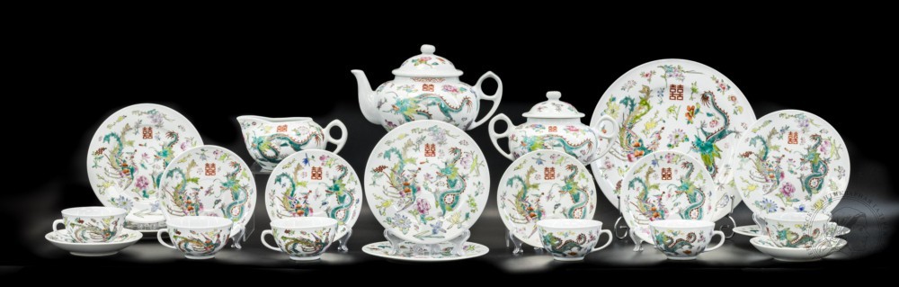 Купить чайный сервиз на шесть персон (22 предмета) с изображением дракона и феникса вы можете в нашем антикварном интернет магазине в Москве.