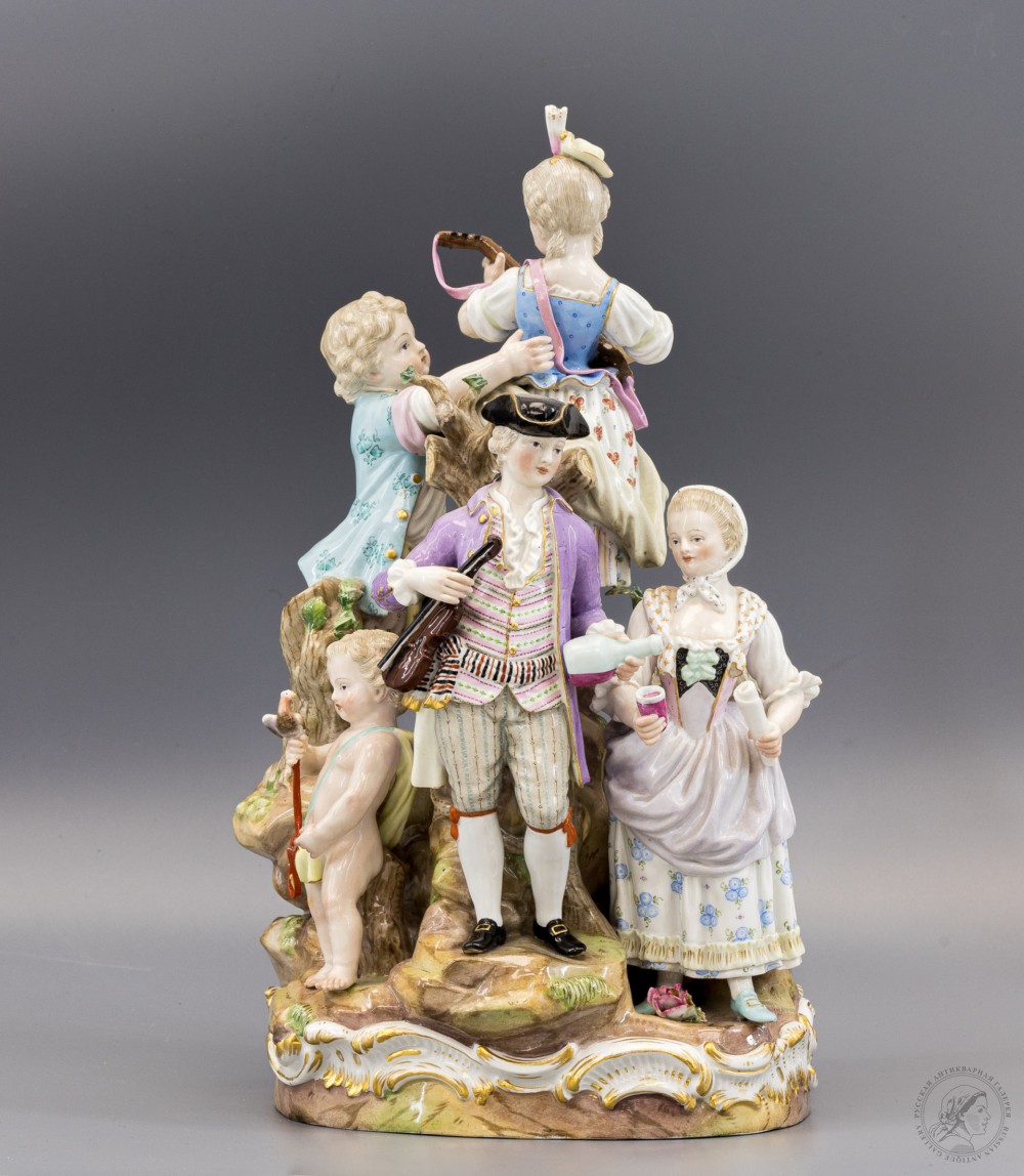 Купить скульптурную группу «Сельский праздник» Мейсенской мануфактуры вы можете в нашем антикварном магазине в Москве
