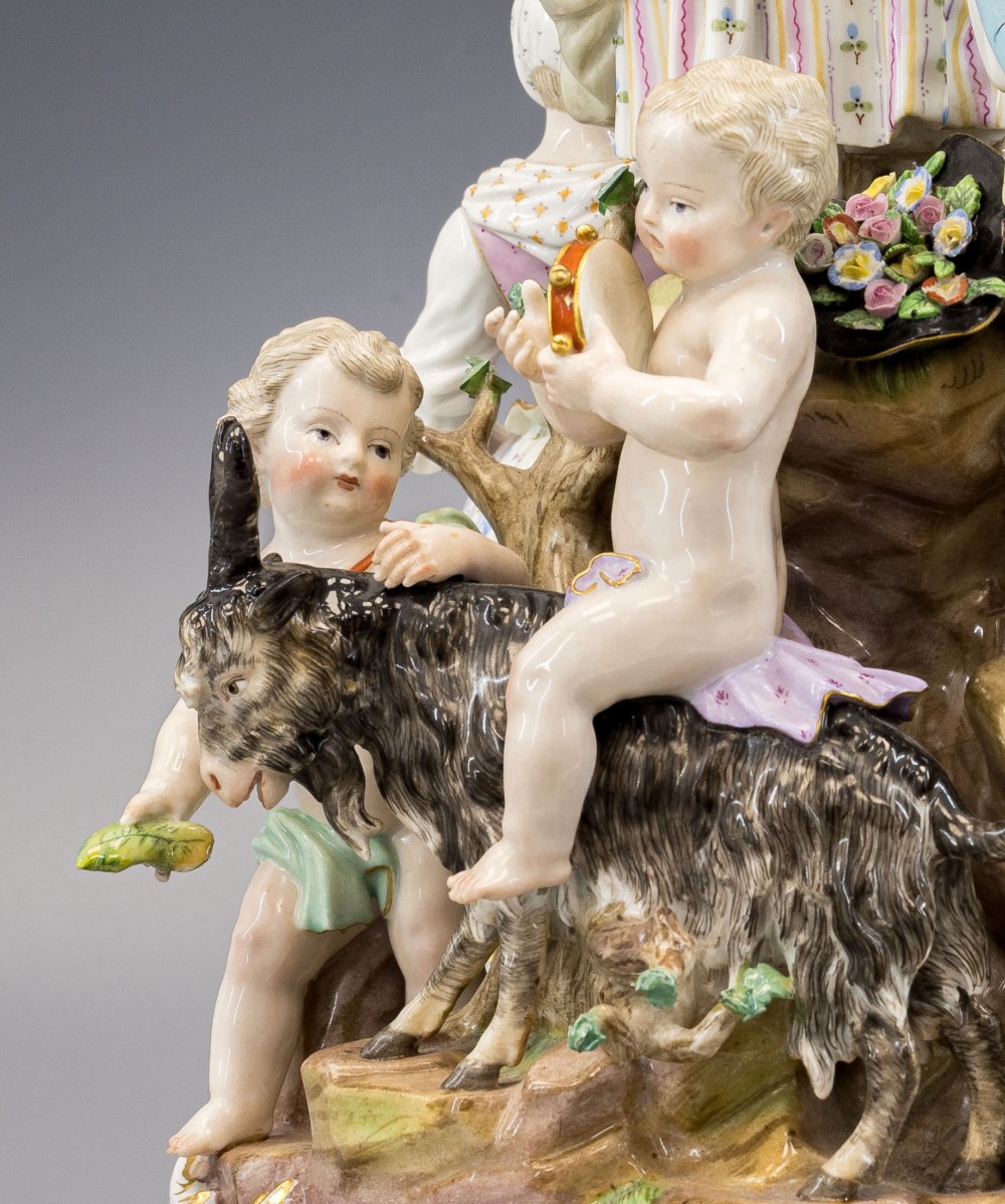 Сохранность: незначительные сколы листьев, реставрационные вмешательства (мелкие детали, руки мальчика под девушкой с гитарой).