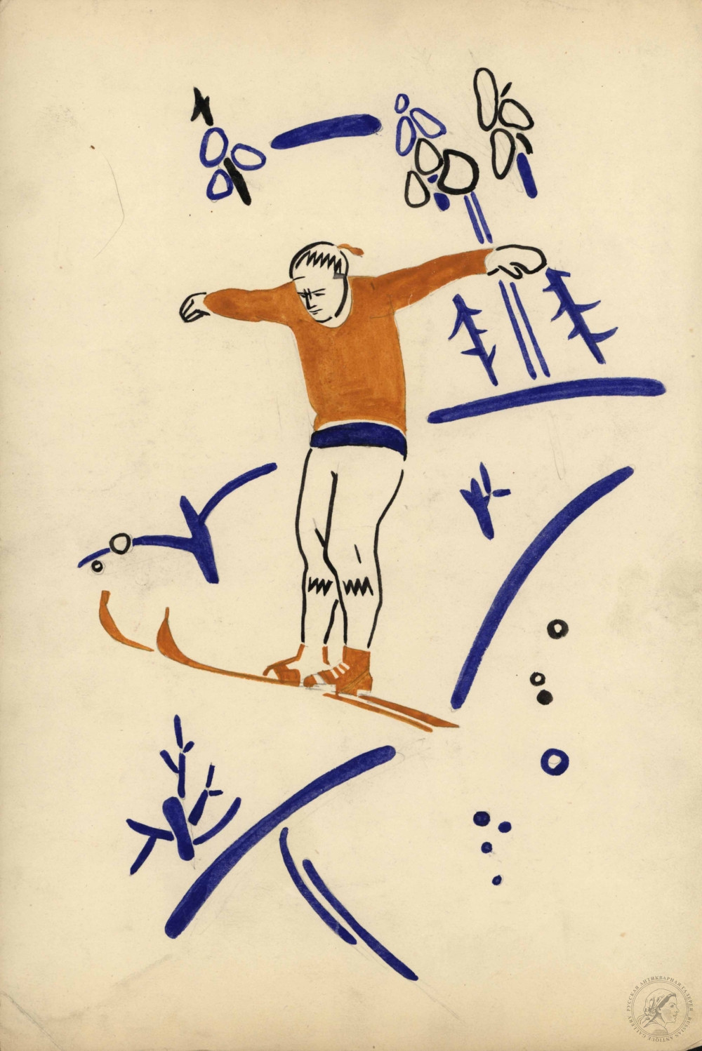 Эскиз плаката «На лыжах в П.К.О. им. Сталина»