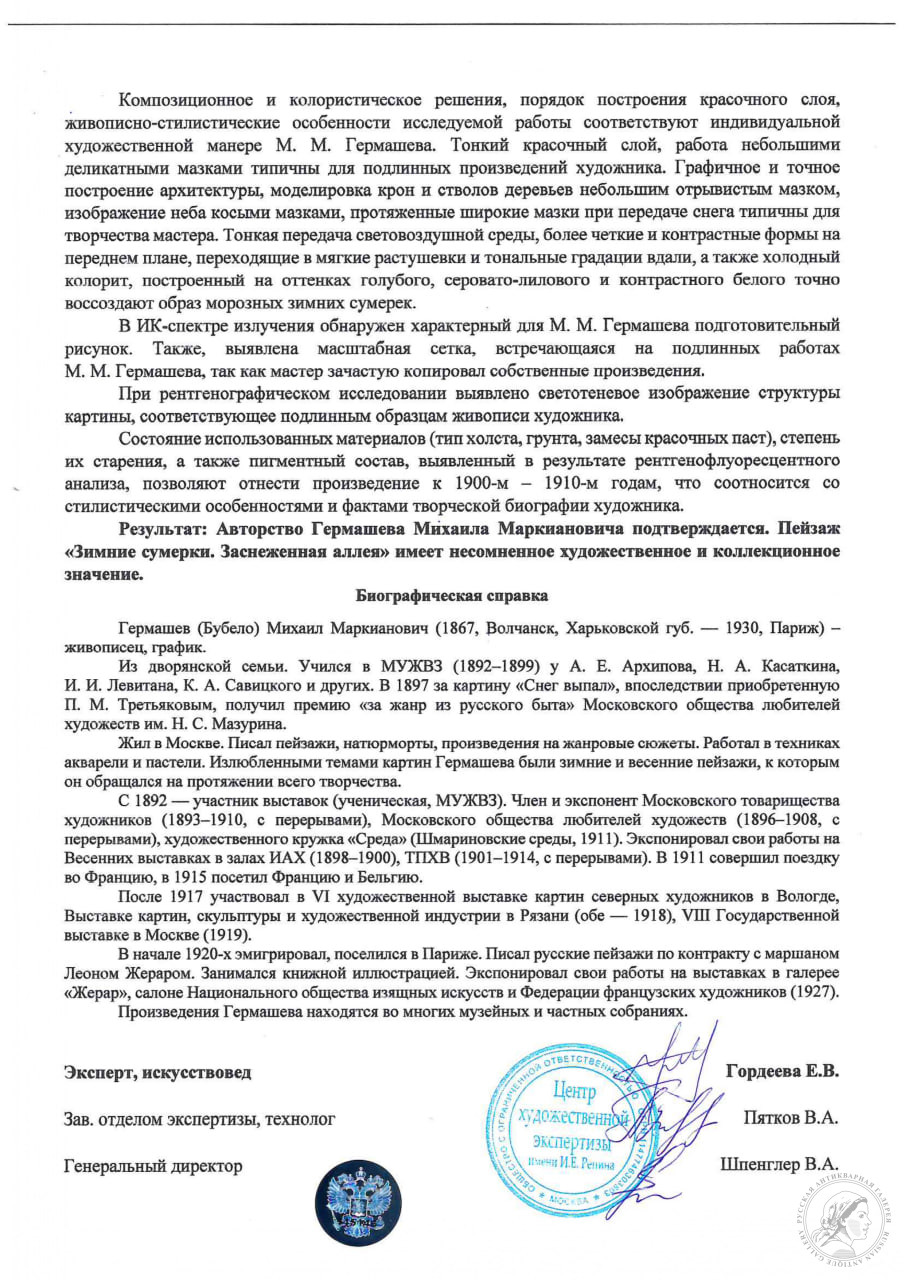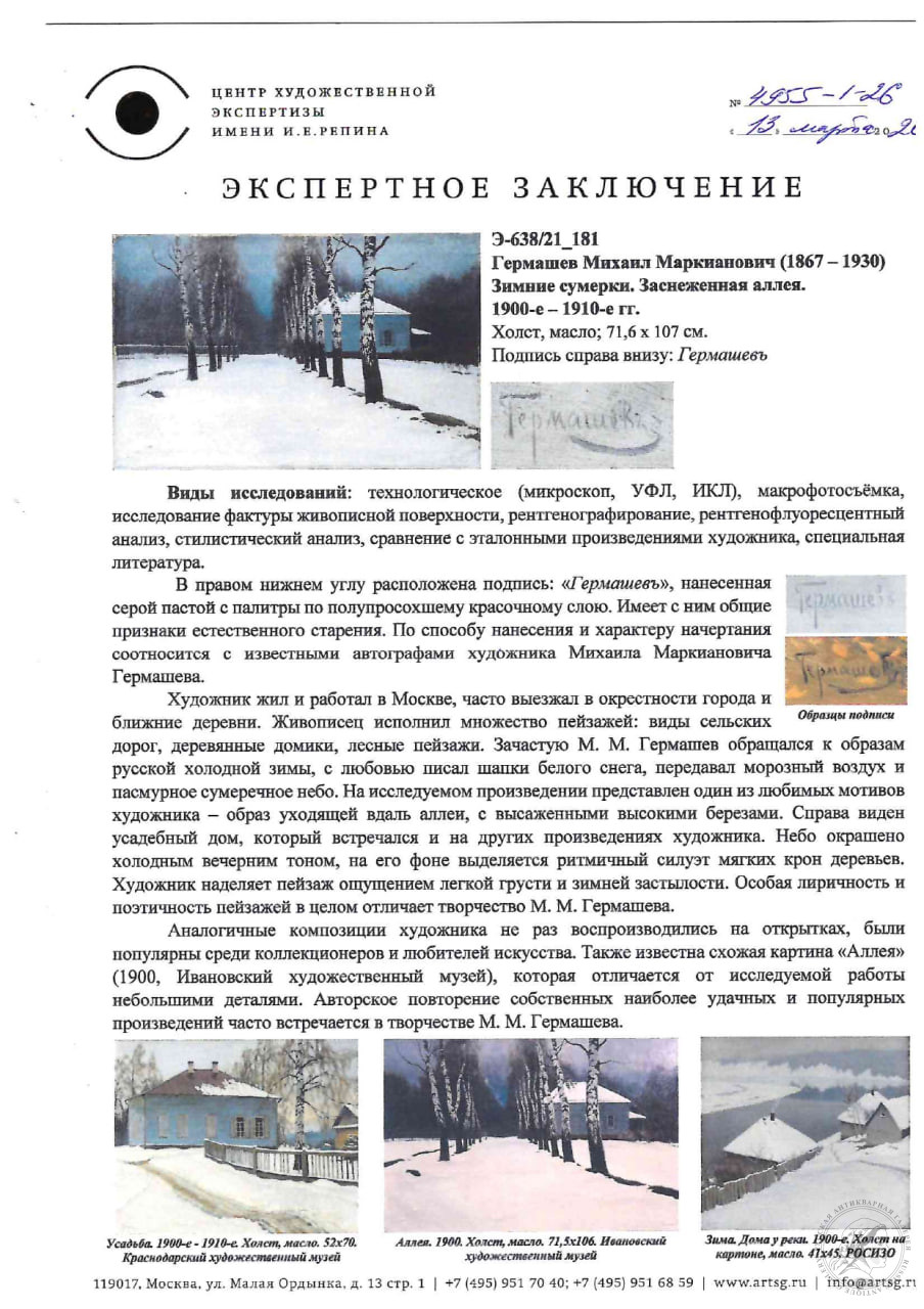 Купить картину «Аллея» художника Гермашева М.М. вы можете в нашем антикварном интернет-магазине в Москве.