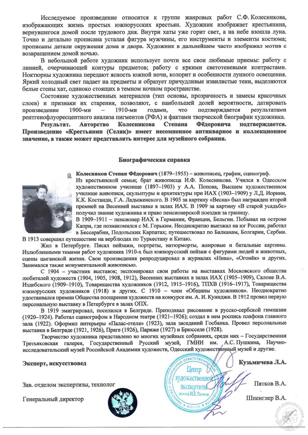 Экспертное заключение ЦХЭ им. Репина (эксперт Кузьмичева Л., 2026 год)