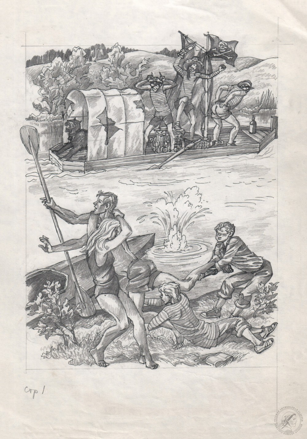 Купить эскиз иллюстрации «Пираты» к книге Митяева А.В. «Из дневника Вовика Башмакова» художника Тамбовкина А.Г. вы можете в нашем антикварном интернет магазине в Москве.