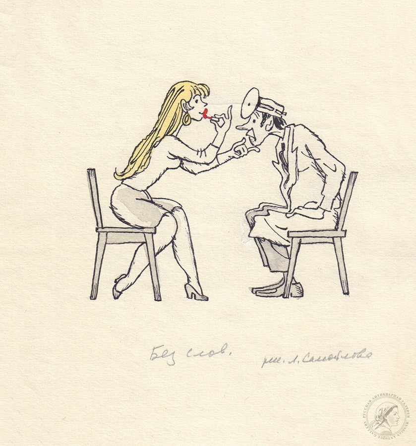 Купить карикатуру «Без слов» художника Самойлова Л.С. вы можете в нашем антикварном интернет-магазине в Москве