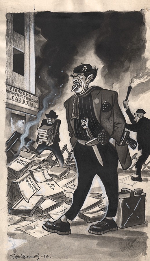 Карикатура «Поджог» к журналу «Крокодил» №34 художник Ефимов Б.Е.