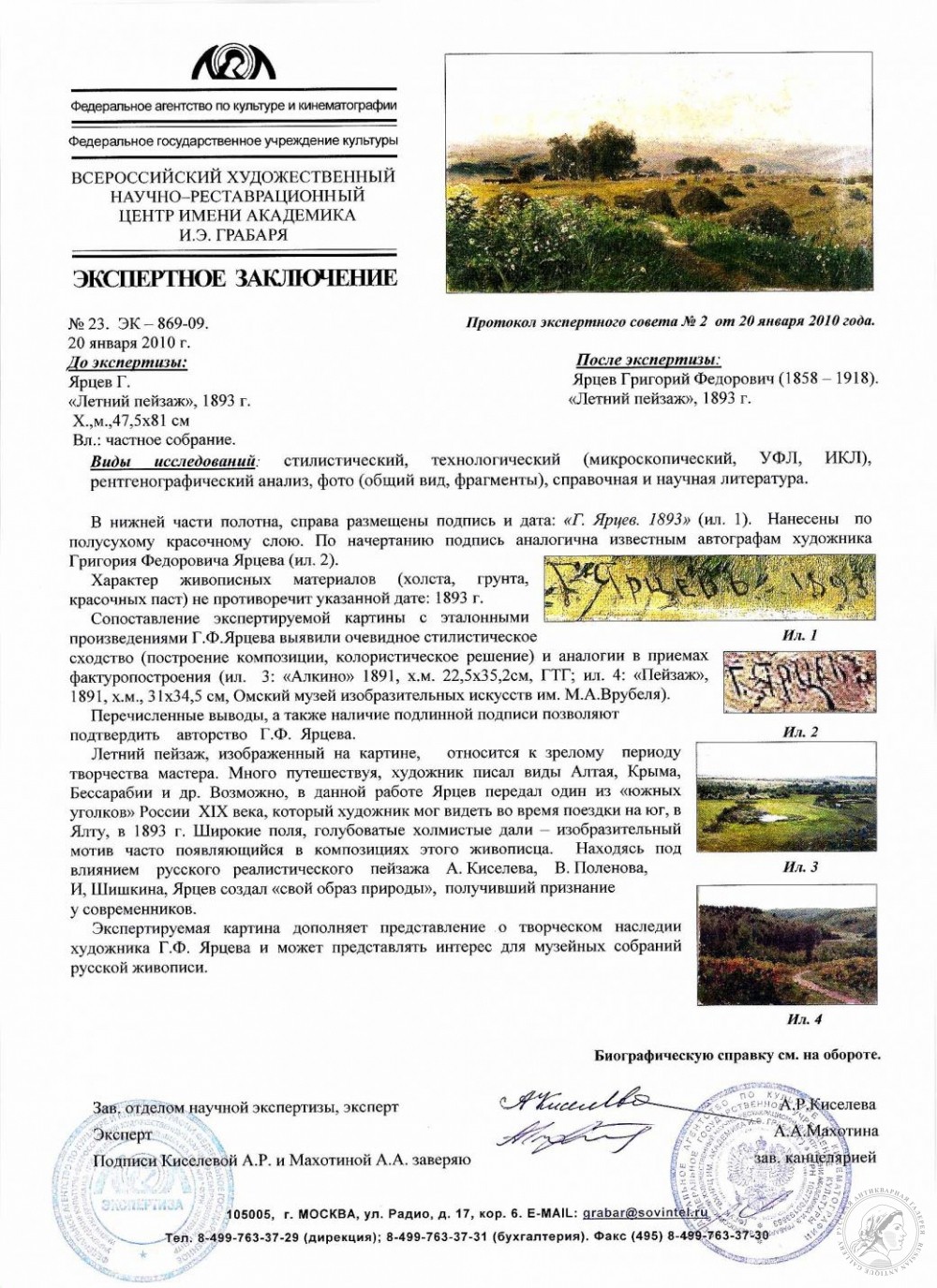 Купить картину «Летний пейзаж» художника Ярцева Г. Ф. вы можете в нашем антикварном интернет-магазине в Москве.
