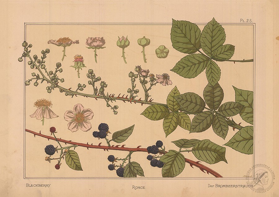 Литография «Ежевика» (Blackberry. Ronce. Der Brombeerstrauch) К каталогу