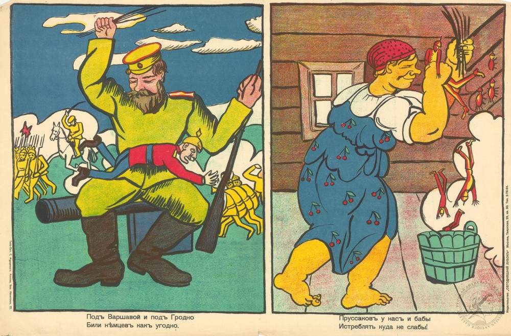 После объявления о начале Первой мировой войны В.В. Маяковский начинает сотрудничество в издательстве «Сегодняшний лубок», которое опубликовало серию хромолитографий и почтовых карточек, рассказывающих о событиях августа-октября 1914 года.