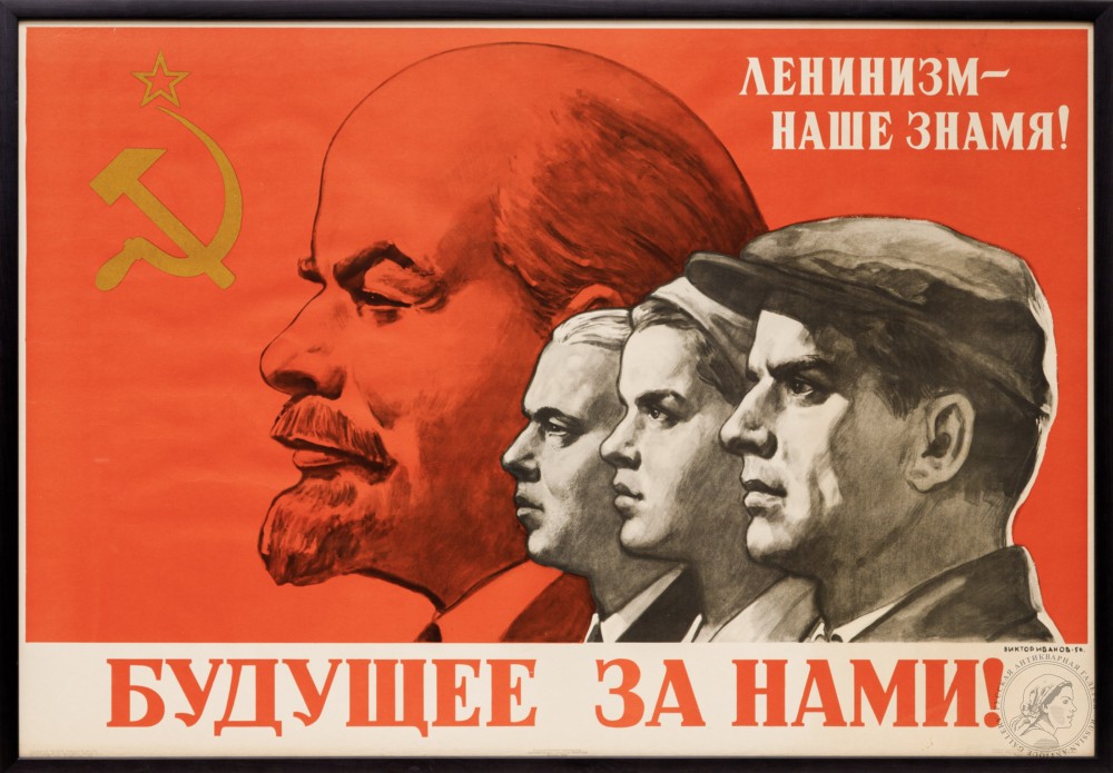 Купить плакат «Ленинизм — наше знамя! Будущее за нами!» художника Иванова В.С. вы можете в нашем антикварном интернет магазине в Москве.