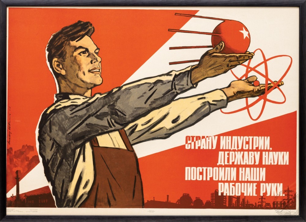 Плакат «Страну индустрии, державу науки построили наши рабочие руки»