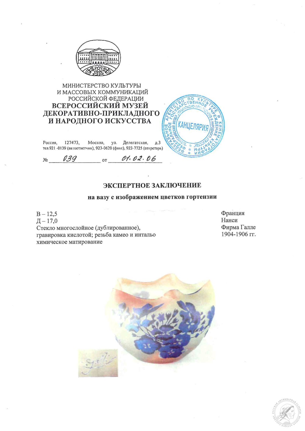 Франция, Нанси, фирма «Galle» (Галле), 1904–1906 гг.