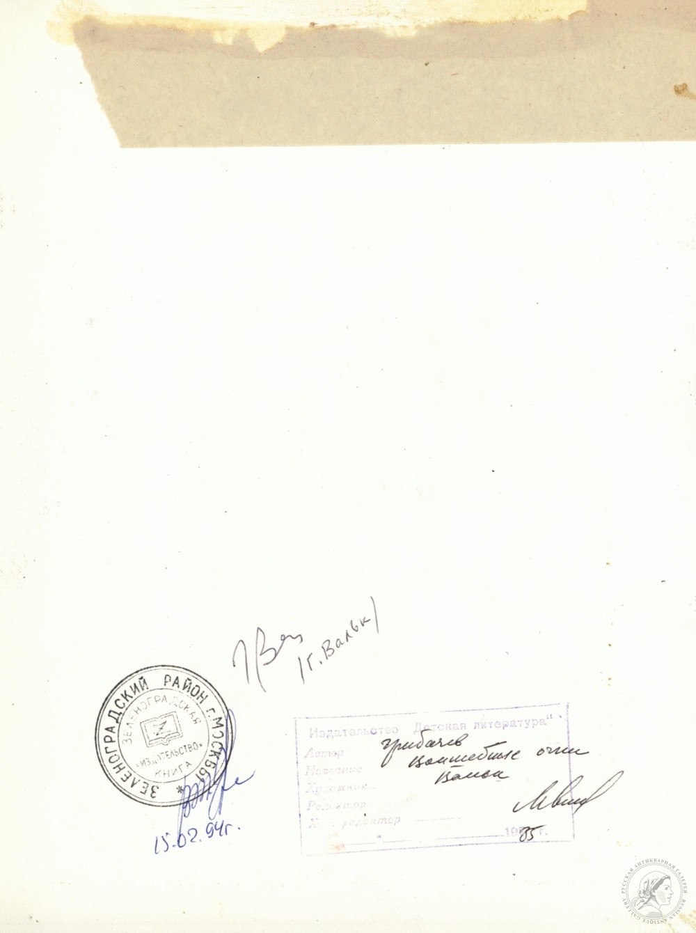 На обороте штамп издательства «Детская литература»